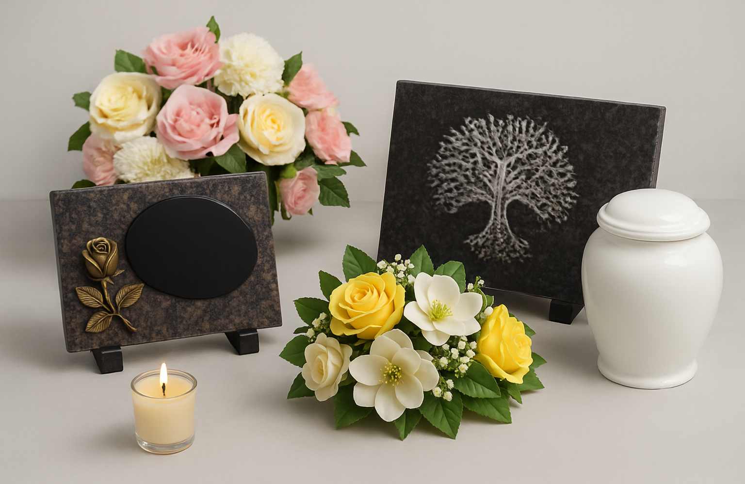 Vous trouverez parmi notre sélection, des urnes, des bougies, des vases, ainsi que divers objets commémoratifs, tous choisis avec soin pour leur qualité et leur élégance.